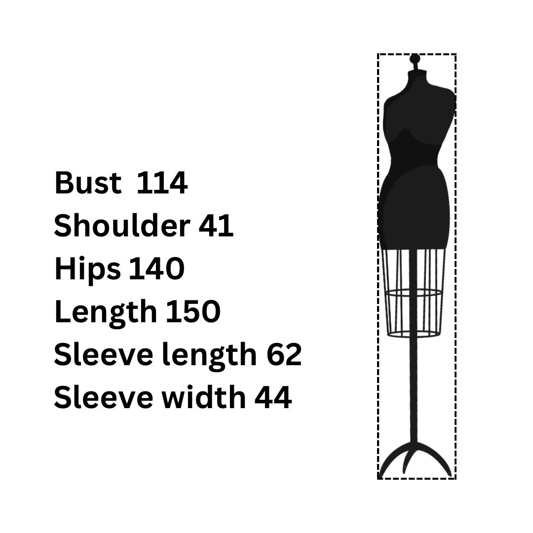 Material satin Size Bust 114 Shoulder 41 Hips 140 Length 150 Sleeve length 62 Sleeve width 44